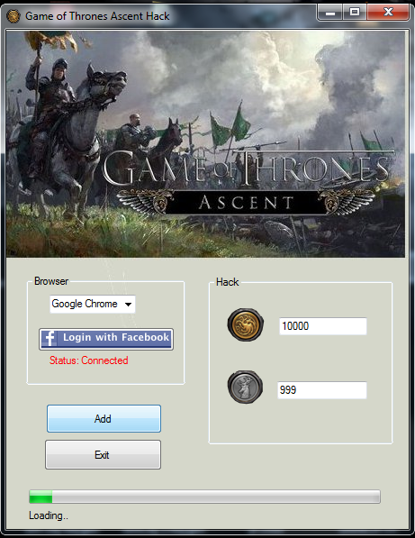 Game Of Thrones Ascent is a social game inspired by Game of Thrones, the medieval fantasy television series. The game, which is being developed by Disrupt Beam with a license from HBO, casts players in a story-driven medieval world where they can expand their lands and grow reputation, forge tribes with friends, and perform quests.Set in the world of Westeros, the game will deliver an unique gaming experience through intriguing stories, challenging quests and social interactions while it has also been expanded considerably from its original storyline with a mix of political and sexual plot as 7 families are eying for the power of Westeros. Download and use our new Game Of Thrones Ascent 2014-2015 Hack and have fun being the Best Game Of Thrones Ascent Player